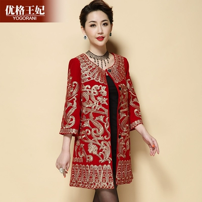 Quần áo thu đông 2019 mới áo khoác nữ thêu nặng áo khoác của mẹ trong phần dài áo gió trung niên cỡ lớn - Quần áo của mẹ mẫu áo sơ mi cho u60
