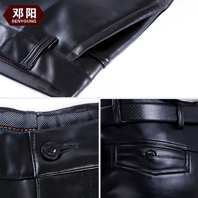 Quần da nam mùa thu đông mô hình ấm dày lỏng không thấm nước xe máy thẳng kích thước lớn cộng với quần nhung da quần jogger nam Quần da