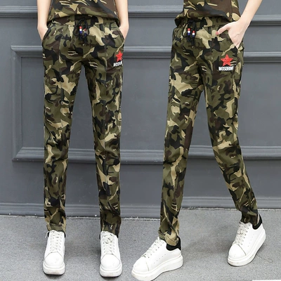 Quần ngụy trang nữ hè 2019 phiên bản Hàn Quốc mới của quần harem lưng thun mỏng, quần âu rộng quần thể thao ngoài trời - Quần Harem quần áo thời trang nữ Quần Harem