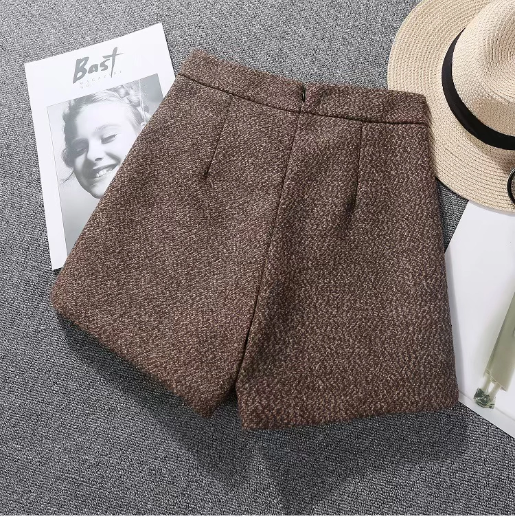 Quần short len ​​nữ mùa đông 2018 phiên bản Hàn Quốc cao eo mặc hoang dã Một chiếc quần ống rộng từ rộng là đôi bốt dày quần short nữ mùa đông Quần short