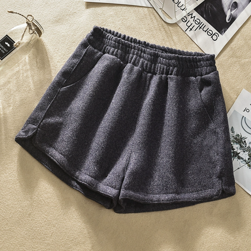 Quần short len ​​nữ mùa thu đông 2018 mới co giãn cao eo thon rộng quần ống rộng bên ngoài mặc quần ống loe thời trang nữ Quần short