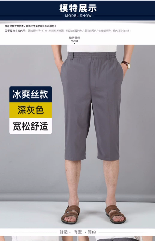 Quần short nam mùa hè trung niên giản dị băng lụa rộng quần rộng trung niên bảy điểm mặc quần đi biển quần đũi nam ngắn 3/4 Jeans