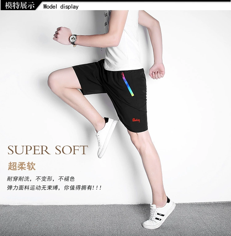 Quần short thể thao nam mùa hè năm quần lỏng chạy bóng rổ tập thể dục kích thước lớn xu hướng cộng với phân bón để tăng quần mỏng thời trang trẻ Cực lớn