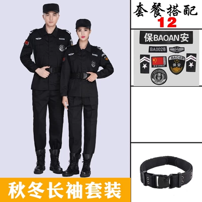 Quần yếm an ninh phù hợp với áo dài tay nam dày đồng phục an ninh mùa xuân và mùa đông và một bộ đầy đủ các đồng phục đào tạo đặc biệt màu đen tùy chỉnh đồ ngủ pijama
