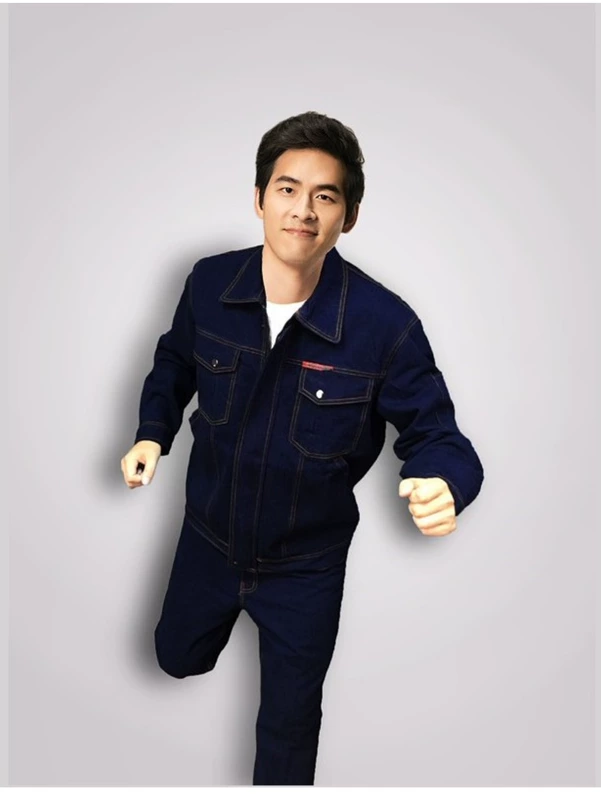 Quần yếm thợ hàn thiết lập dây kéo denim dụng cụ hàn cơ khí bảo hiểm lao động nam và nữ làm việc quần áo đặc biệt mùa thu và mùa đông đồ bộ thể thao