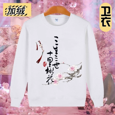 Sansheng Sanshi Shili Peach Blossom Áo thun giản dị Cặp đôi cộng với áo len nhung nam và nữ áo khoác dài tay Trung Quốc