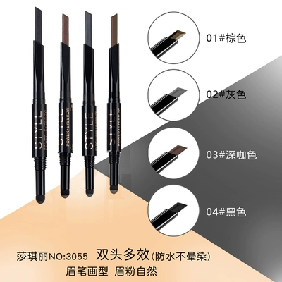 Shaqili 3055 hai đầu bút chì kẻ lông mày tự động + kem lông mày dạng bột không thấm nước và mồ hôi lâu không dễ làm nhòe lớp trang điểm của học sinh kẻ chân mày phẩy sợi Bút chì lông mày / Bột / Stick