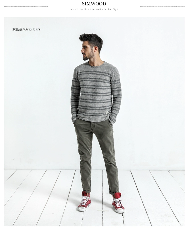 Simwood Jane gỗ nam mùa xuân mới Châu Âu và Mỹ curling trùm đầu áo len sọc vòng cổ Slim áo len nam quần áo nam đẹp Kéo qua