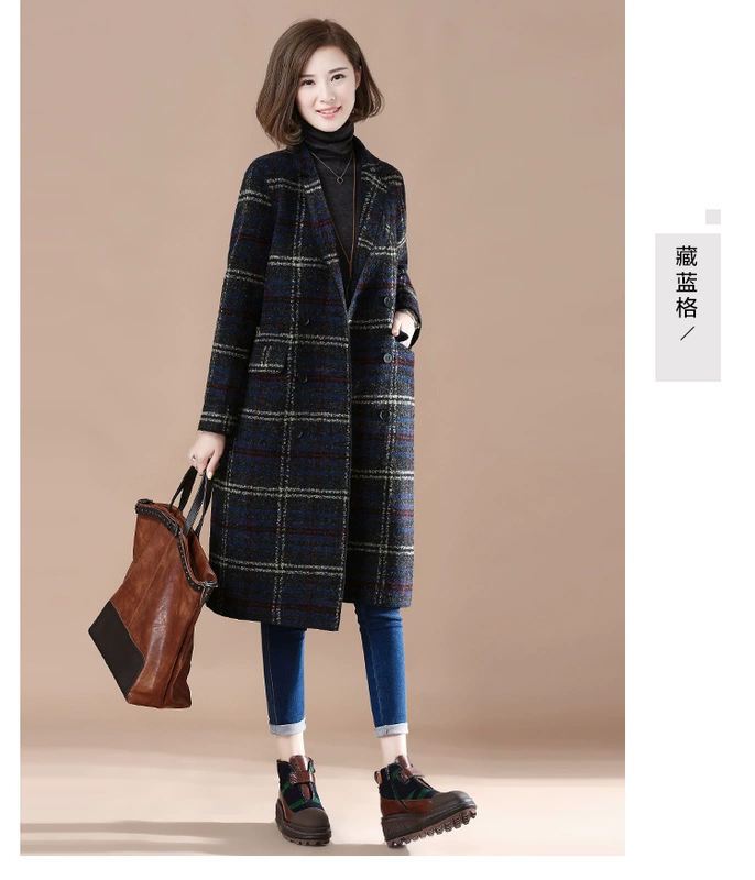 Tháng 9 Momo 2018 thu đông mùa thu mới của phụ nữ áo khoác len kẻ sọc nữ dài giản dị áo da nữ dáng dài