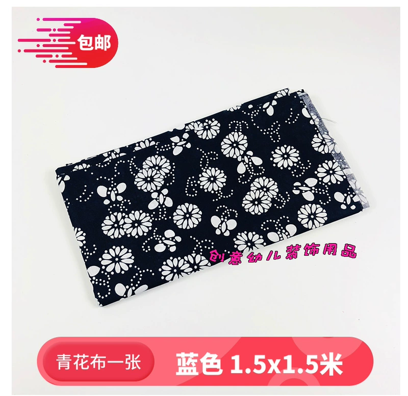 Trang trí tường mẫu giáo môi trường vật liệu bố trí phong cách Trung Quốc màu xanh và trắng sứ dải vải màu xanh sáng tạo thủ công di - Vải vải tự làm vải thô hàn Vải vải tự làm