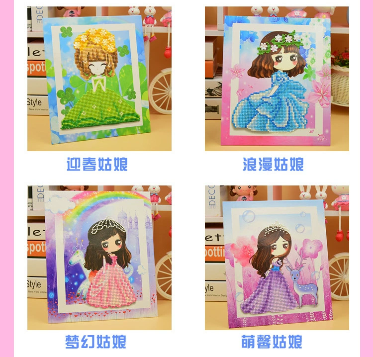 Trẻ em làm bằng tay ba chiều các tông kim cương dán Vật liệu sản xuất DIY Mẫu giáo dán cô gái đồ chơi sáng tạo đồ dùng mầm non