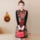 Trung niên cỡ lớn mùa xuân retro in đáy váy mùa thu và mùa đông mẹ đầm dài tay áo rộng vợ váy sườn xám áo cho người trung tuổi