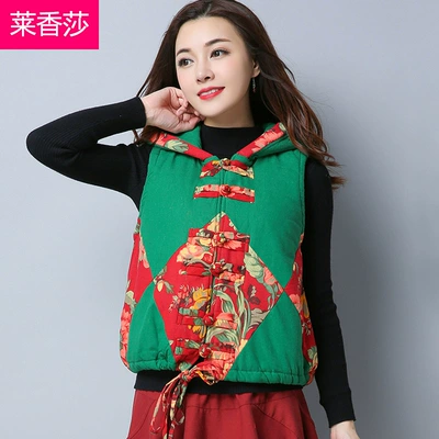 Trung Quốc Tang phù hợp với áo vest gió quốc gia phụ nữ retro cotton lanh in vest chần đệm ấm áo vest nữ - Áo vest áo blazer nữ