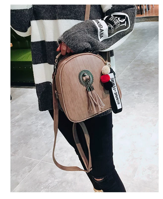 Túi xách nữ 2018 mùa đông mới tua vai vai đa năng nhỏ ba lô retro thời trang đi lại túi xách nữ cặp nam đi học