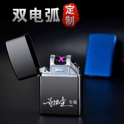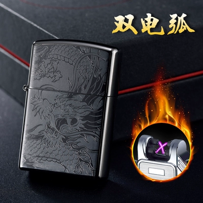 USB đôi hồ quang sạc nhẹ cá tính sáng tạo gió nhẹ chữ điện tử gửi bạn trai thủy triều 2018 mới - Bật lửa dupont chính hãng