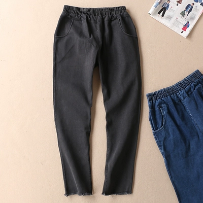 Vải dày, quần mùa thu và mùa đông, viền, thêu thêu, quần âu, phụ nữ, quần jean có lưng thun, C117 quần bò dài Quần jean