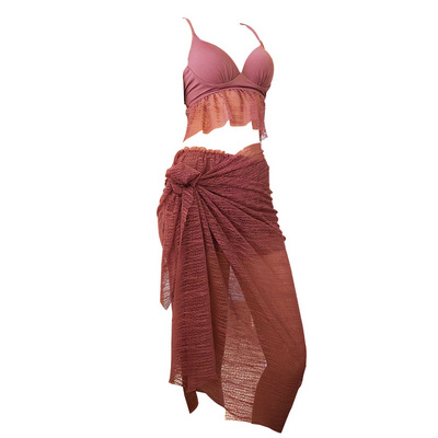 Váy bikini liền thân màu chồi ruy băng thép tấm thu thập góc phẳng chia váy ba mảnh bikini áo tắm nữ - Bikinis Bikinis
