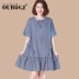 Váy kẻ sọc OUBOGJ cotton dài mùa hè 2019 mới rộng kích thước lớn nữ retro một từ váy - A-Line Váy đầm xòe trễ vai voan