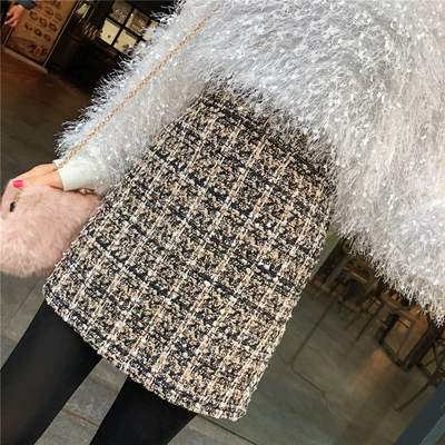 Váy len nữ mùa thu đông mới eo cao kẻ sọc Váy kẻ sọc hoang dã kiểu dáng đẹp từ váy hông chân váy đen Váy