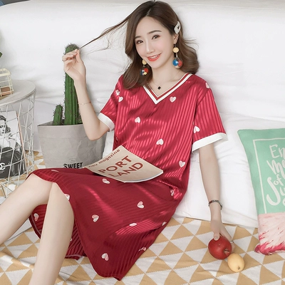 Váy ngủ nữ dài giữa mùa hè mỏng băng lụa phiên bản Hàn Quốc ngọt ngào và đáng yêu lụa tơ tằm - Đêm đầm đầm đẹp giá rẻ Đêm đầm