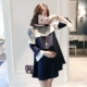 Váy xuân hè 2019 Đầm bà bầu phiên bản Hàn Quốc mới bằng cổ áo bằng gỗ cổ áo ren khâu Một chiếc áo bà bầu áo khoác bầu Áo thai sản