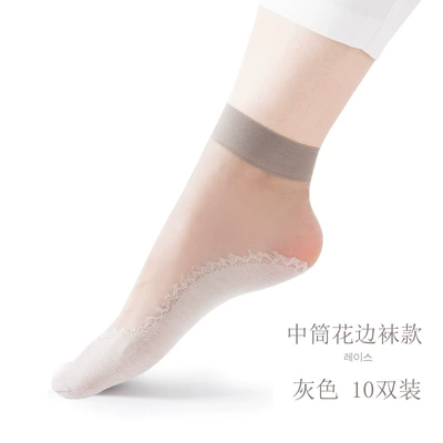 Vớ ngắn siêu mỏng cotton chống móc đáy mùa hè chống trơn trượt nữ màu đen đôi tất màu sắc mùa xuân và vớ ống mùa thu tất dài đến đầu gối Vớ