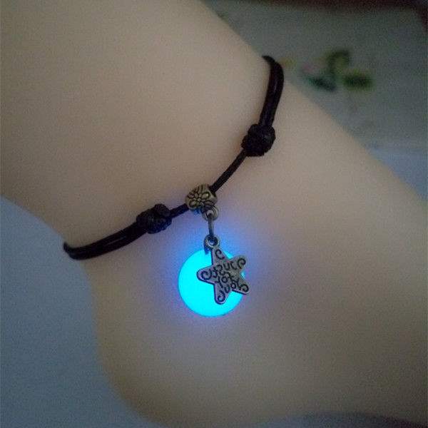 Vòng chân hạt dạ quang nam và nữ đôi chân dây thừng Sen nữ sinh viên thời trang hoang dã món quà sinh nhật dạ quang đá quý vòng chân - Vòng chân những mẫu lắc chân đẹp nhất Vòng chân