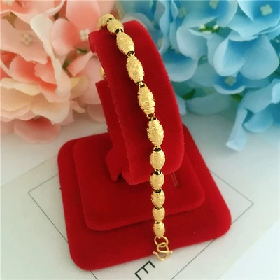 Vòng đeo tay hạt mạ vàng đồng mạ vàng Nam và nữ Mô phỏng lâu dài Trang sức 24k đồng xu Việt Nam Vòng tay vàng cát thạch anh tóc xanh Vòng đeo tay Clasp