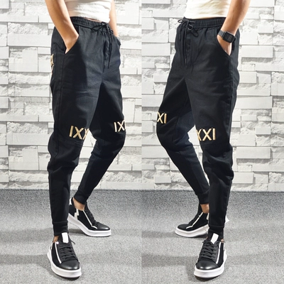 Winter Men Công cụ thêu thông thường Xu hướng tinh thần Xã hội Guy Red Man Harem Quần Nhỏ Beams Quần mỏng quần kaki nam