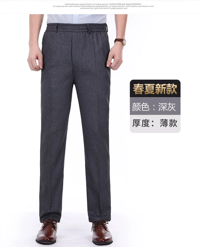 Xia mỏng trung niên của nam giới thường quần không-sắt quần cũ nam vành đai đàn hồi quần quần cao eo squat lỏng quần vải nam Quần