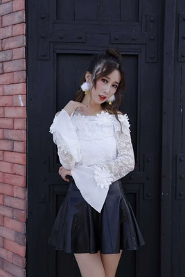 Xuân 2018 mới ba chiều hoa ngọt ngào cổ áo tay áo kèn tay áo sơ mi ren mỏng sơ mi nữ voan hoang dã áo sơ mi màu vàng Áo sơ mi chiffon ren