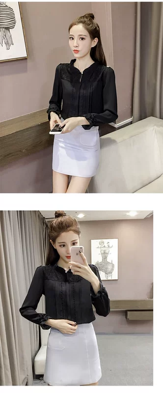 Xuân 2018 và áo sơ mi nữ mới mùa xuân cổ áo tay dài ren khâu áo sơ mi mùa xuân áo sơ mi mỏng áo sơ mi voan kiểu hàn quốc Áo sơ mi chiffon ren