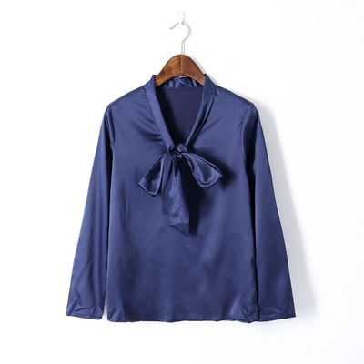 Xuân 2019 mới của phụ nữ thời trang hoang dã màu tinh khiết ngọt ngào thắt nơ áo dài tay áo rộng - Áo sơ mi dài tay áo sơ mi tay dài