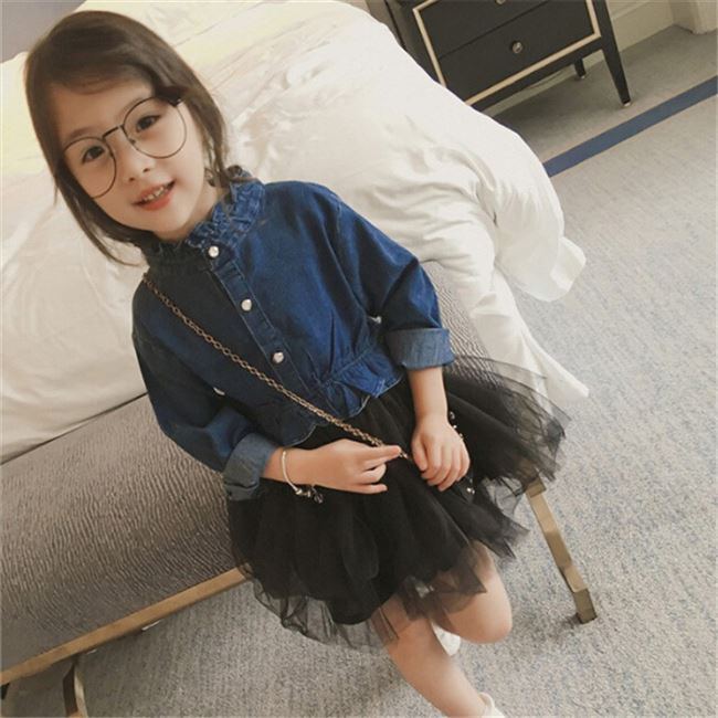 Xuân 2019 quần áo trẻ em mới bé gái váy denim lưới sợi váy công chúa váy 2-7 tuổi - Khác Khác